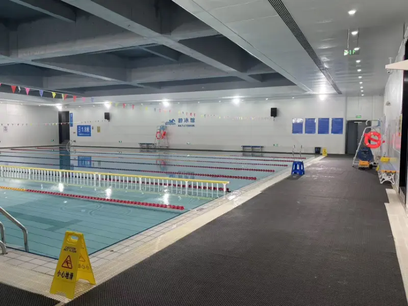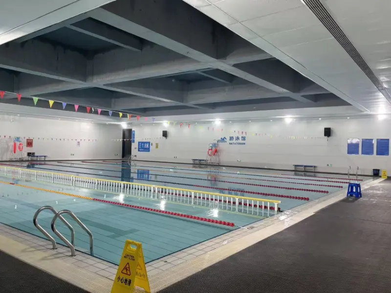 Спољашњост базена садржи метални систем панела од рибљег каменца, стварајући ефекат светлости и сенке налик на љуску који се мења са закривљеношћу фасаде и правцем сунчеве светлости, побољшавајући „ток воде“. Цела кровна конструкција затвореног базена је изложена, са решетком у дужини од 48 метара, наглашавајући експлицитни израз структуралне логике и појачавајући просторну скалу и осећај моћи спортског објекта. У објекту се налазе два базена: базен за такмичење и базен за тренинг. Такмичарски базен је дугачак 50 метара и широк 25 метара, са 8 трака; Тренажни базен је дугачак 50 метара и широк 17 метара, са 6 трака. Оба базена су дубока 2 метра.